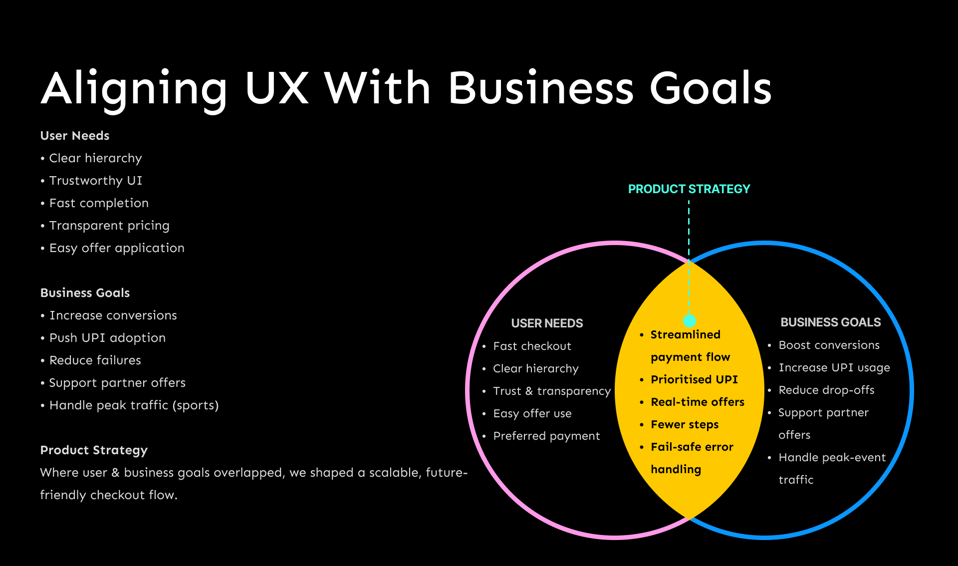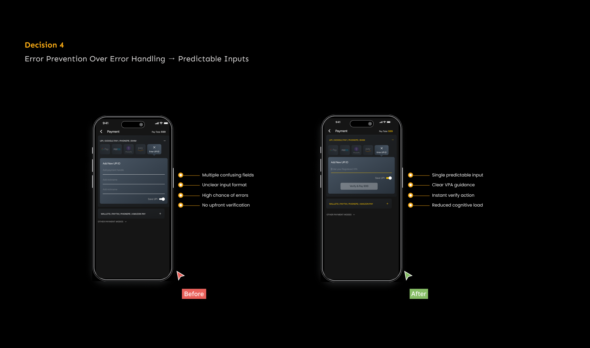 • Payment UX principles (trust, clarity, error prevention)