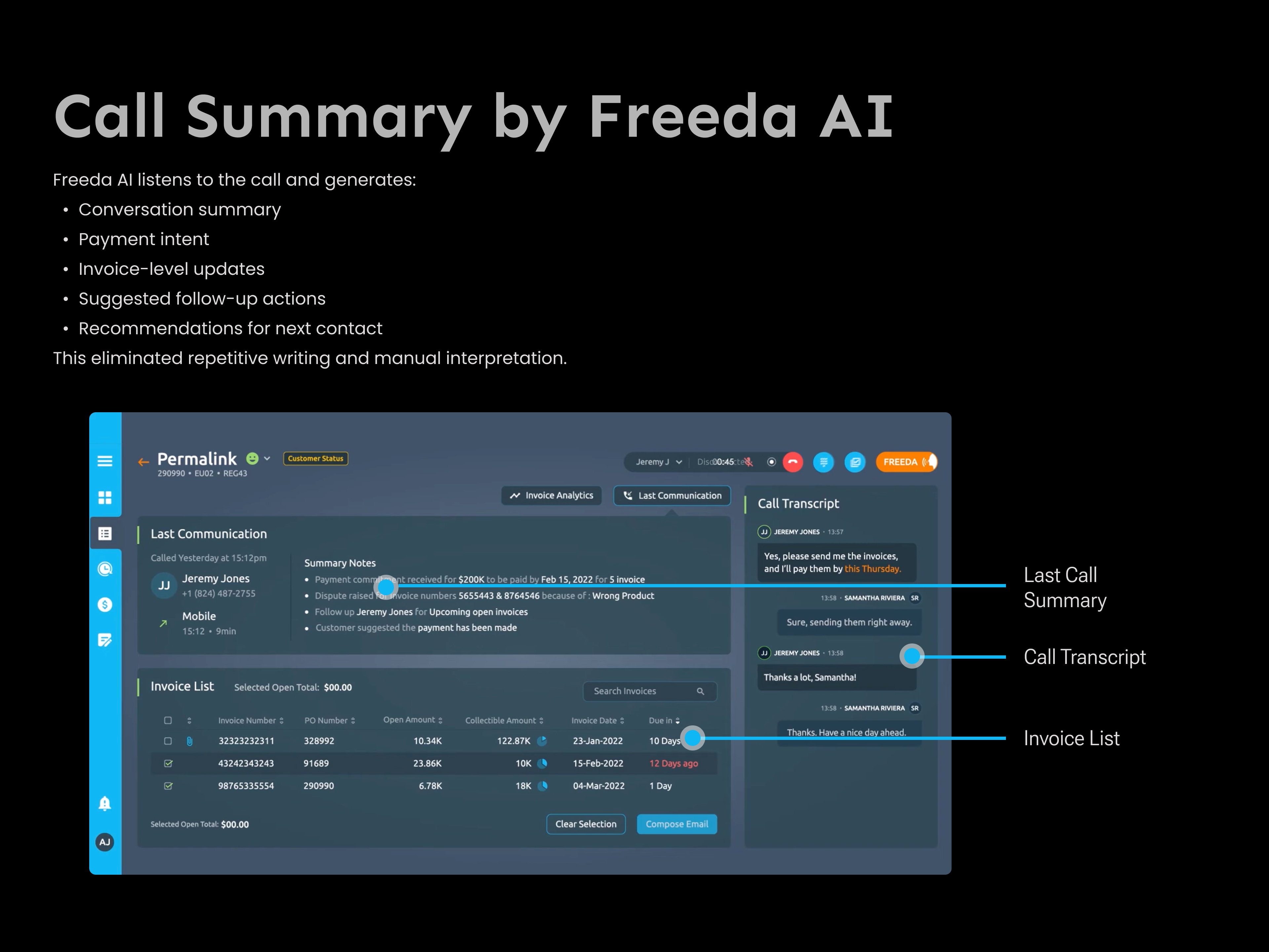 - Analysis of 180+ minutes of recorded calls